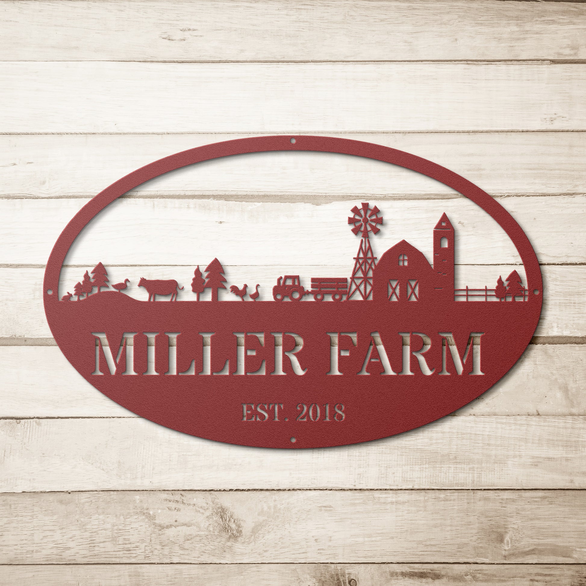 Add a touch of farmhouse charm to your property with our Farm Life Monogram. Personalize the sign with your family name or the name of your farm, making it a distinctive addition to your home decor. Made from high-quality 18-gauge steel, this sign is built to endure. The powder-coated finish ensures lasting protection against the elements, so you can enjoy its vibrant presence for years to come. With five color options available, you can choose the perfect shade to match your aesthetic. The Farm Life Monogram steel sign is more than just a decoration—it's a personalized emblem of pride for your home or farm.